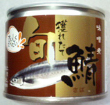 1缶(190g/固形140g) 「三陸沖〜常磐沖で獲れた旬の脂がのったさばを獲れたてのまま加工しました」 味付け秋刀魚に続いてこちら味噌煮。 秋刀魚より固形量が多いな。秋刀魚みたくお上品な小振りではなくドーンとデカイ切り身と、尻尾の方の小さめなのが2切れ入ってた。