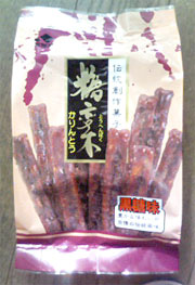 糖変木かりんとう 常盤堂製菓 2006年12月25日 1袋(180g) 糖変木=とうへんぼく。 黒糖味のかりんとう。 かりんとうってたまーにムショーに食べたくなる!!こいつは太っっくて長くてかなりボリュームあり!長いかりんとうって珍しい。? 味はまー普通のかりんとうなワケだけど安っちーヤツみたく中がスカスカ空洞ではなく、中もみっちり詰まった感じがイイ◎甘ったるくなくて美味しいです〜顎強化にも良し(笑w ☆常盤堂製菓HP あなたの1Clickがプァワーの源です♪ 「├和っぽいもん」カテゴリの最新記事 タグ :#かりんとう#常盤堂製菓 < 前の記事次の記事 > コメント コメントフォーム 名前 コメント 記事の評価 リセット リセット 顔 星 情報を記憶 コメントを投稿する