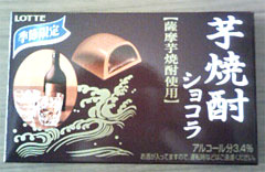 ウイスキーボンボンみたいにチョコの中に液体の焼酎が入ってるわけで、一口で食べないとこぼれる〜〜。おっこりゃ美味い。つってもやっぱり芋焼酎なのかは言われなきゃわからへんけどww