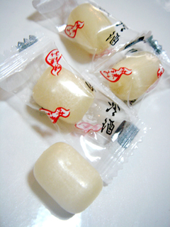 ほんのり黄色みがかった白い飴。香りはそれほど酒っぽくなく。