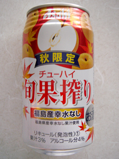 旬果搾り<福島産幸水なし> アサヒビール 2008年08月28日 各1缶(350ml)¥108 ●福島産幸水なし 56kcal/100ml 無色透明、ほんのり梨の香り。 ん〜梨。前回飲んだラ・フランスの洋梨感とは違う日本の梨。 秋ですな〜〜 ●山梨産ピオーネ 62kcal/100ml ちょっと薄めのピンク紫色。ほんのり葡萄の香りはしっかり葡萄味。 酸味より甘みが強く感じられみずみずしい♪ 梨に葡萄。やはし秋ですなぁ〜 ☆アサヒビールHP あなたの1Clickがプァワーの源です♪ 「★飲んだんアルコール・ドリンク」カテゴリの最新記事 「├缶チューハイ・カクテル・ビール」カテゴリの最新記事 タグ :#旬果搾り#福島産幸水なし#アサヒビール#チューハイ#缶チューハイ < 前の記事次の記事 > コメント コメントフォーム 名前 コメント 記事の評価 リセット リセット 顔 星 情報を記憶 コメントを投稿する トラックバック