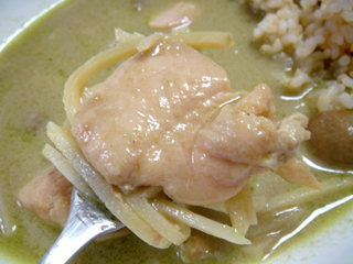 完全スープ状のルウは、超ココナッツミルクが効いてて甘ぁい。独特の甘み。