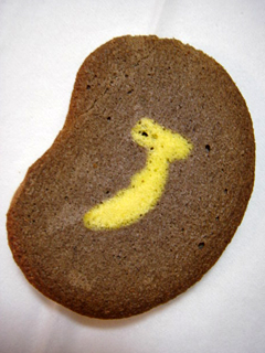 コクのある<バナナミルクシェイク>味のホワイトチョコレートを贅沢にはさんだ、ラングドシャクッキーです。☆東京ばな奈HP