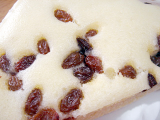 つるんっとした薄ら黄色の生地にレーズンがちらほら。