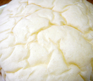 真っ白な表面は袋の中で蒸れて超しっとり(笑)袋に生地が持ってかれます〜