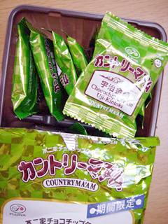カントリーマアム(宇治金時) 不二家 2010年04月20日 1袋(16枚)49kcal/1枚 ¥198 宇治抹茶がほろ苦く香るクッキー生地に、スイートチョコチップと小豆を加えて、かき氷の宇治金時をイメージしました。冷やして食べてもおいしい、春から初夏の期間限定のカントリーマアムです。 カントリーマアムの新作。 いつものふっくらフォルムにキレイな緑色〜 しっかりお抹茶風味のさっくりしっとり生地に、チョコチップがコリッ。 中の小豆と相まってまさに宇治金時してる〜んでいつも以上に甘々っ これは確かに冷やしてもおいしそう〜〜 ☆不二家HP あなたの1Clickがプァワーの源です♪ 「├洋っぽいもん」カテゴリの最新記事 タグ :#カントリーマアム#宇治金時#不二家 < 前の記事次の記事 > コメント コメントフォーム 名前 コメント 記事の評価 リセット リセット 顔 星 情報を記憶 コメントを投稿する トラックバック