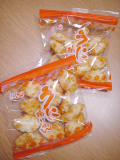 うに揚げせん ぼんち 2010年05月29日 1袋(4パック)111kcal/1パック ¥198 濃厚な海の幸“うに”のうま味を満喫していただける、1口サイズのあられです。おつまみにも、おやつにも便利な4パックの分包です。 小袋食べきりサイズが嬉しい♪小粒の楕円フォルム。 ザクッとハードな歯ごたえながら、すぐにサクホロッと崩れる軽やかさ。 お味は‥味醂+出汁?言われてみれば瓶詰めの加工うにぽい(笑) まぁあんまりウニウニしててもおやつには合わないし(笑) ほどよい甘塩っぱさでおやつにも◎、お酒にはもっと◎です〜 ☆ぼんちHP あなたの1Clickがプァワーの源です♪ 「├和っぽいもん」カテゴリの最新記事 タグ :#うに揚げせん#ぼんち#おかき < 前の記事次の記事 > コメント コメントフォーム 名前 コメント 記事の評価 リセット リセット 顔 星 情報を記憶 コメントを投稿する トラックバック