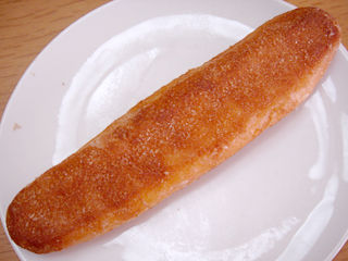 スティック状のほんのり甘いパンを揚げ、シナモンシュガーをまぶしました。