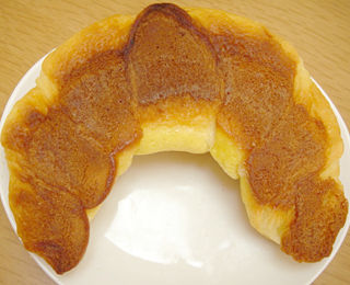 デニッシュ生地にビスケット生地を重ねて巻いた、三日月の