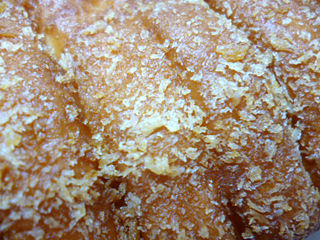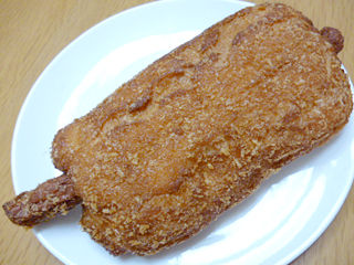 パン粉をまとった生地は表面は軽く油分があるも中の染み込みはなく、見た目ほど油っぽ過ぎず。目がギュッと詰まりもぎゅっと噛み応え。