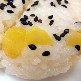 原材料:芋栗ご飯(米、昆布風味だし、栗、さつまいも甘露煮、その他)、胡麻、調味料、‥