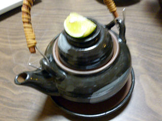 ●蒸し物:秋茸の土瓶蒸し(占地、海老、銀杏、焼き葱、酢橘)
