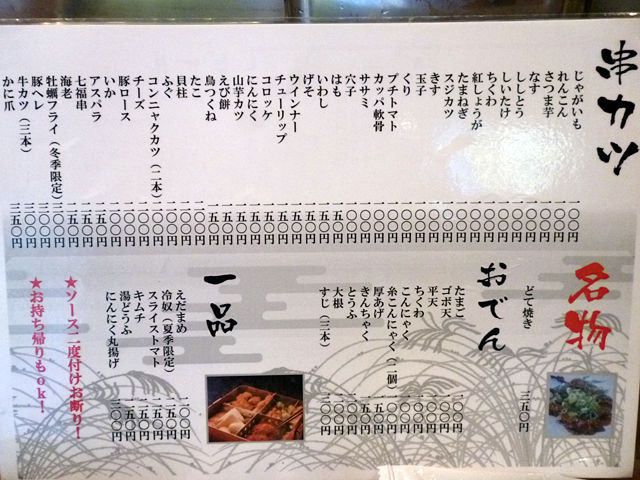 9月初め。こちらとこちらに伺った天満飲みの一軒目にオジャマしたのは串かつの「七福神」さん。天神橋筋商店街中にあるお店の姉妹店。