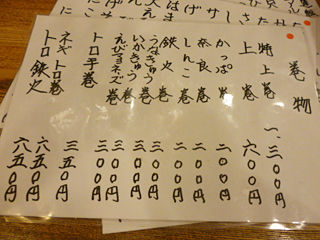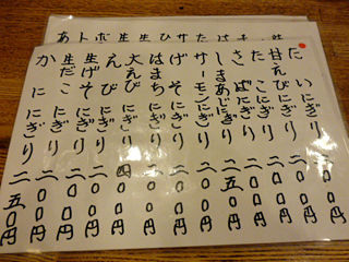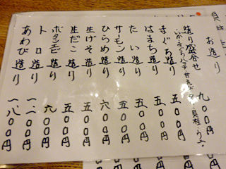 メニューもお刺身、寿司に簡単な一品。寿司屋ってほとんど行かないから、値段の感覚が無いのだけどw安いのかな??