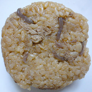 原材料:牛肉・蒟蒻入り味付ご飯、茹卵、ph調整剤、酢酸Na、調味料、‥