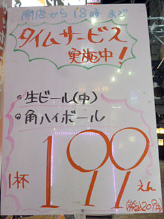 サッポロ生ビール(中)¥199(タイムサービス、通常¥340)