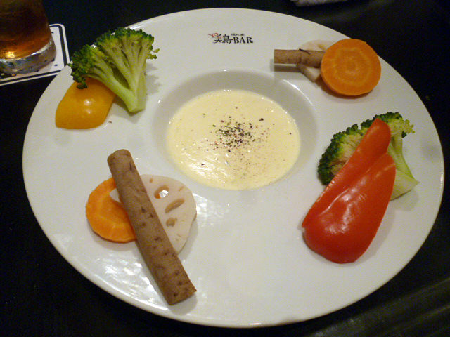 バーニャカウダ風だけど、それほど塩気や風味はキツくなくポタージュぽいまったりまろやかさ。ソースはバゲットで残さず頂きましたっ