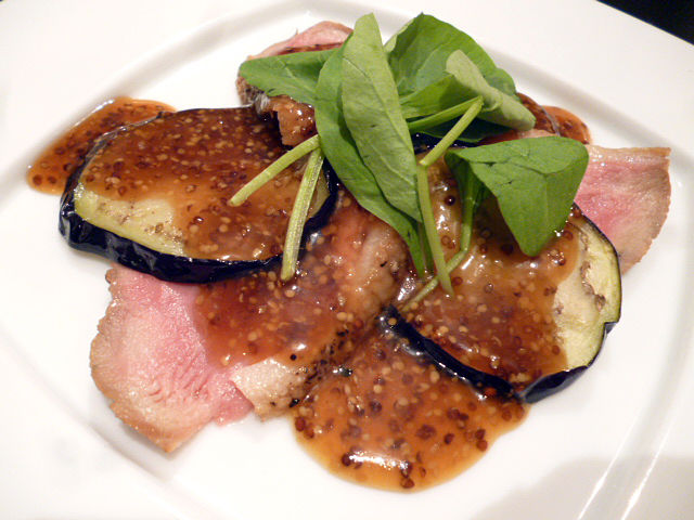 キレーなピンク色の鴨肉!とろっと茄子&和風ソースとの相性もピタリ!