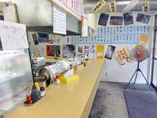 店内は中央調理場をぐる〜り囲うカウンター。何かムダに広い(笑)