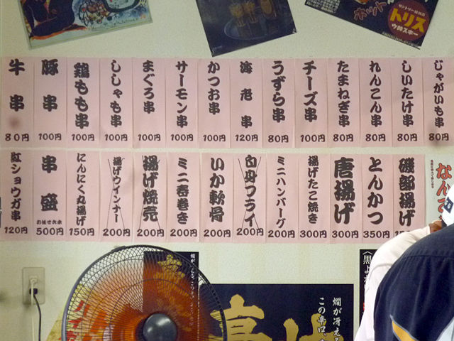 串かつ(牛¥80、かつお¥100)