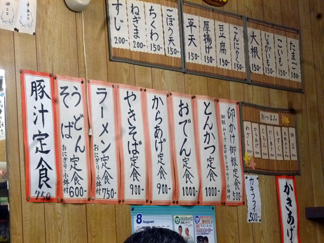 メニューは定食多数、同じく丼もの麺類豊富、おでんその他一品もアリ。