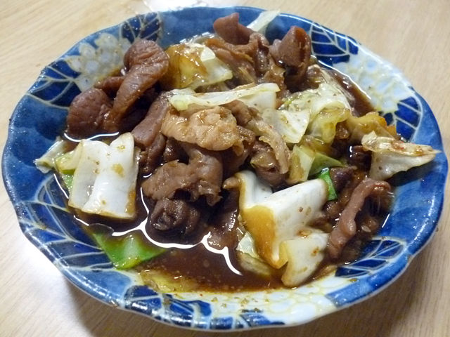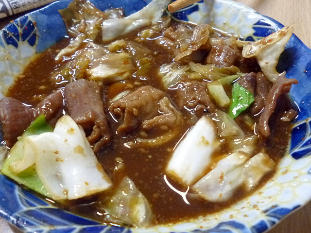 プリプリやわらかな豚にキャベツ入り。ホイコーロー的な味噌甘辛濃い味付け!こりゃ酒も進むが白飯も食べたくなる!美味!