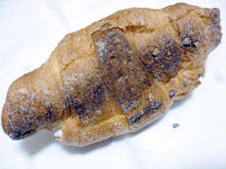 こんがり生地は柔らか頼りない感じはなく、皮がぐいぃっとヒキあり、中は層が感じられぱつんっふっくらもっちり。袋パンにしては上出来!