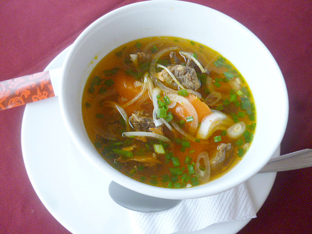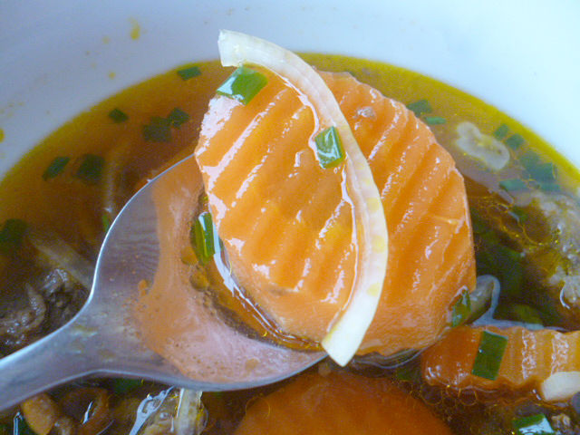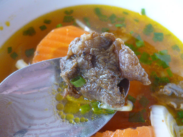 煮込みとあるのでシチュー的なものを想像するも、牛肉入りのスープな仕様。