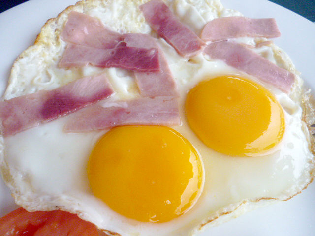 目玉焼きは半熟というよりかなりレア!でフォーク刺すととろ〜〜〜り!