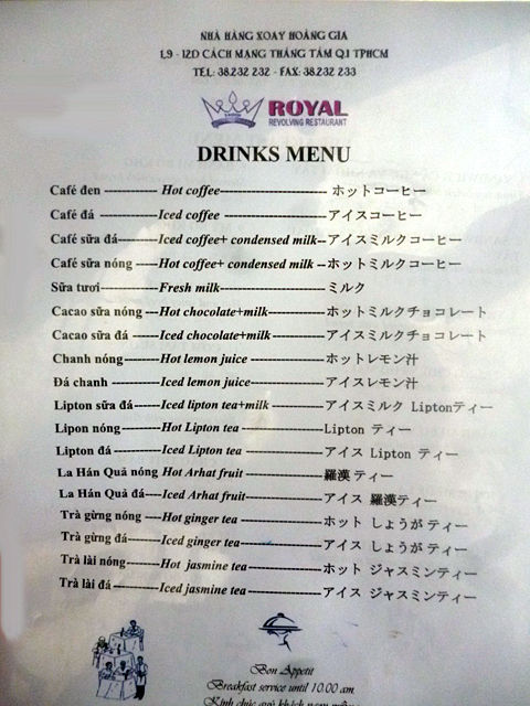 コーヒー。これが美味しい!いわゆる練乳入りのソレではなく、ブラックの濃いコーヒー。チョコのような甘い香りにコーヒー豆の苦味とアロマ香がすごくイイ!外では全然飲まなかったのだけど、ベトナムのコーヒーはどれもこんなに美味しいのかな?!買って帰らなかったことに大後悔…w