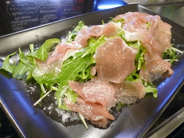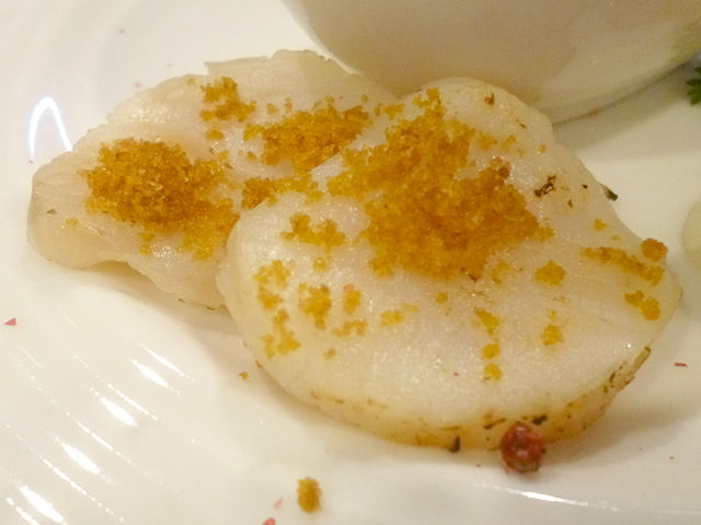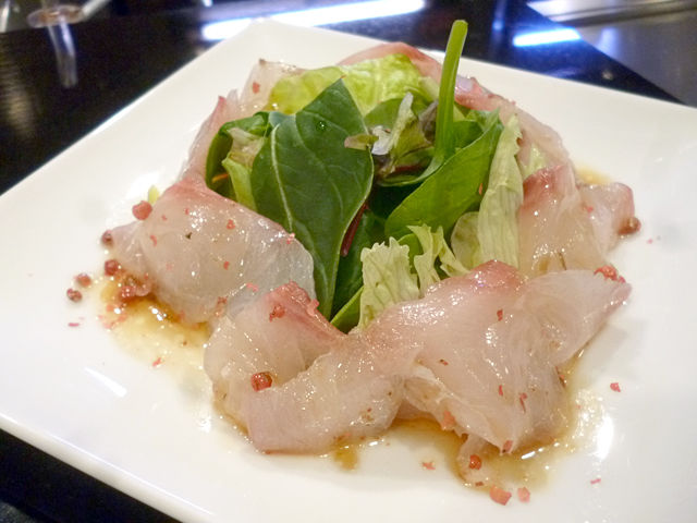 カンパチ‥だったかしらwカルパッチョって薄切りのものが多いけど、こちらはお刺身のように厚切り!プリコリッ♪