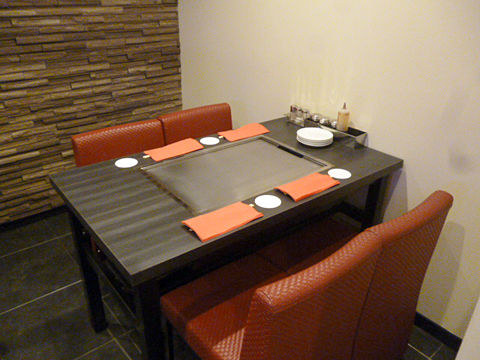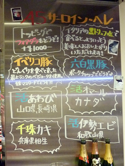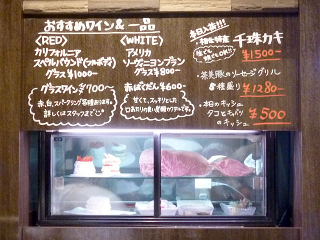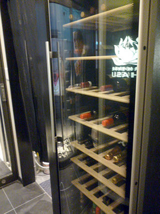 入るとまずワインセラーがお出迎え、店内は鉄板と向かい合ったカウンター席、奥に4人掛けのテーブル席がひとつ、と小じんまり。