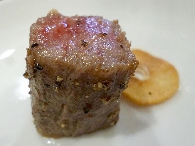 そして。いよいよメインのお肉!シェフの笑顔とともに登場です!
