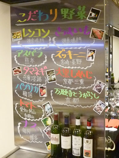 両サイドにはこだわり食材たちがカラフルに描かれ、オトナな雰囲気の中に可愛らしさも兼ね備えたステキ空間です。