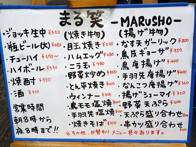 「まる笑(まるしょう)」さん。座れる飲み屋さんです。