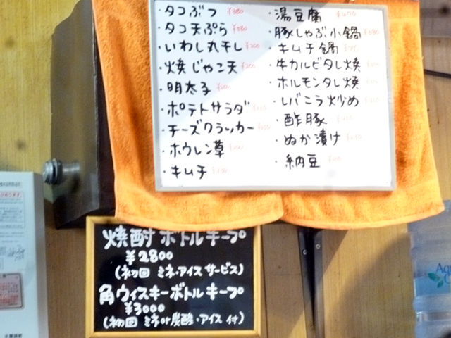 メニューは手元パウチに通常もの、黒板にその日のおすすめが。
