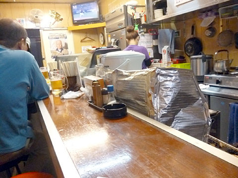奥に細長い店内は右手調理場前のカウンターと壁際カウンター、一番奥にも席があるようで、思ったより広い感じ。