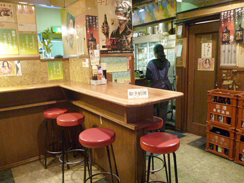 入口は店内は入ってすぐにミニカウンター、さらに進んだ奥も調理場前から壁に沿いカウンターが続くちょっと不思議な造り。そっか、1人客が多いのかな?互いが顔をつき合わせずに済む感じです!