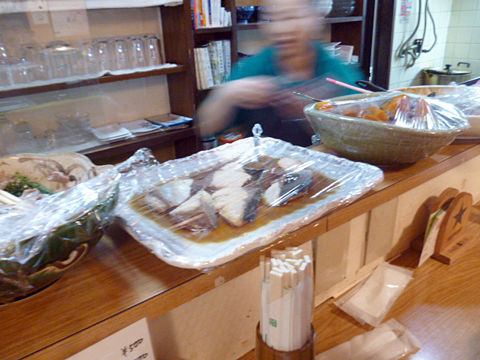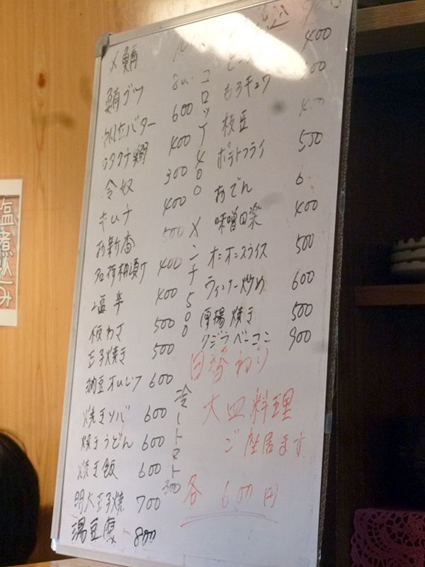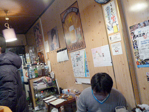 さて。オジャマした店内は左にカウンター、右にめちゃ狭いというか細い、小上がり。足が乗り切らず(?)地面にブラブラと、微妙な座り具合な感じで(笑)