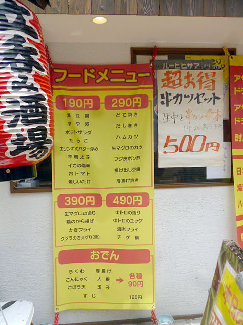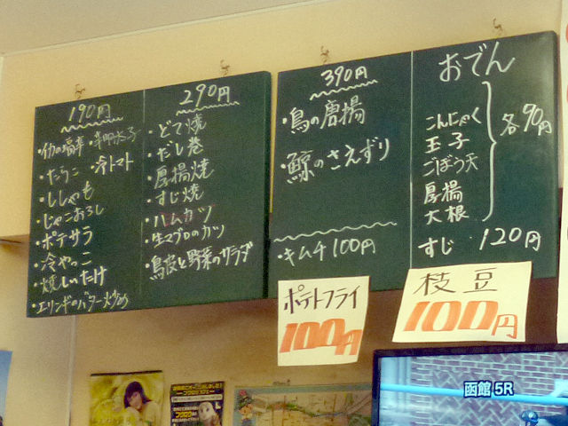 品揃えや価格ともに、ちょっとチェーン店の「赤垣屋」に似てるかしら。いや、それよりちょっと安いかな?