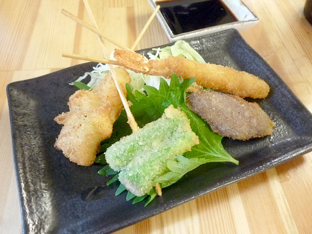 いわゆる大阪串カツというより、居酒屋の串揚げ的な感じ。フツーです。