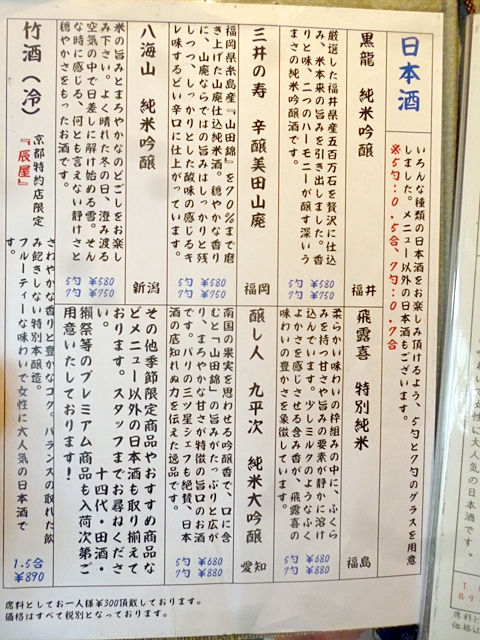 ドリンクメニュー(もう半ページ、日本酒のメニューがありました)