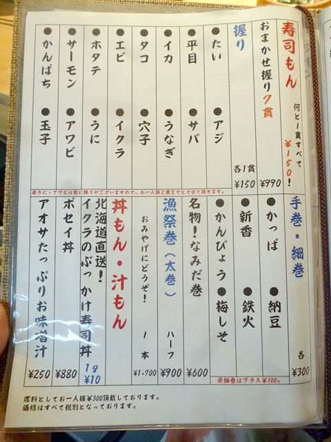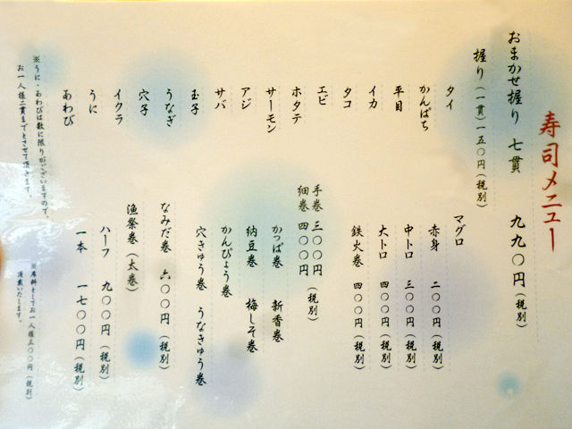 で、こちらがお寿司のメニュー
