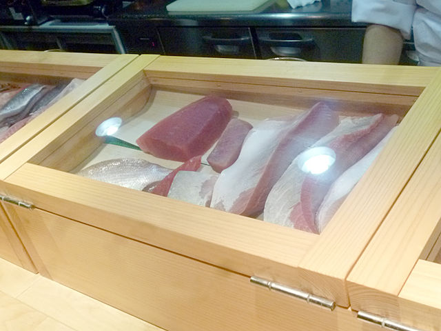 カウンター中央のネタケースも見せて頂きました。イイ感じ〜っ