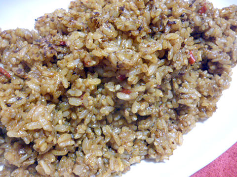 ピラフゆえフライパン調理でもパラッとせず、しっとり。