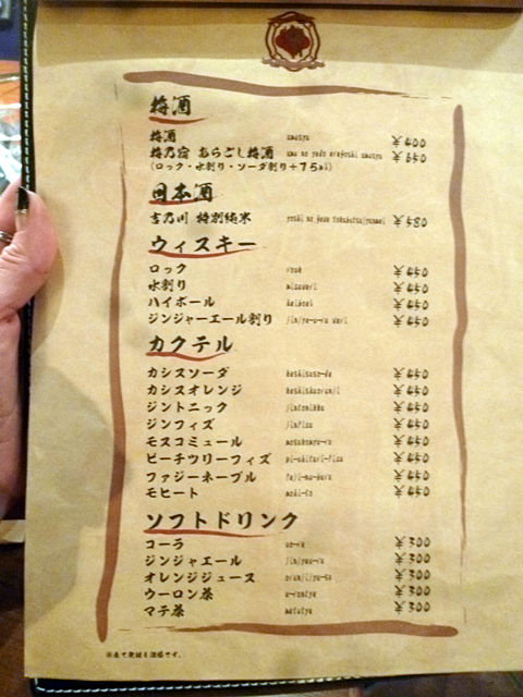 今回は奥のテーブル席にて、お店おすすめの品々を頂きます。