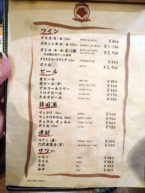 ドリンクも、ビール、サワー、焼酎、マッコリ、ワイン、カクテルなど一通り。
