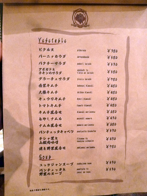 メインのお肉を筆頭に、キムチやナムル、バーニャカウダなどの野菜もしっかり、スープ、アラカルト、〆もん、デザートなどが揃います。