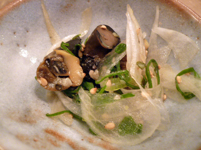 付き出し:鰆の味噌漬け、サザエのネギ和え