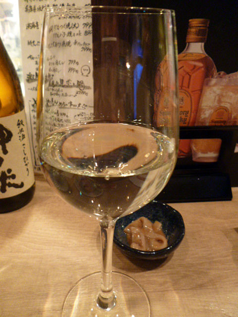 で早速、日本酒〜。自家製いかの塩辛とともに…。
